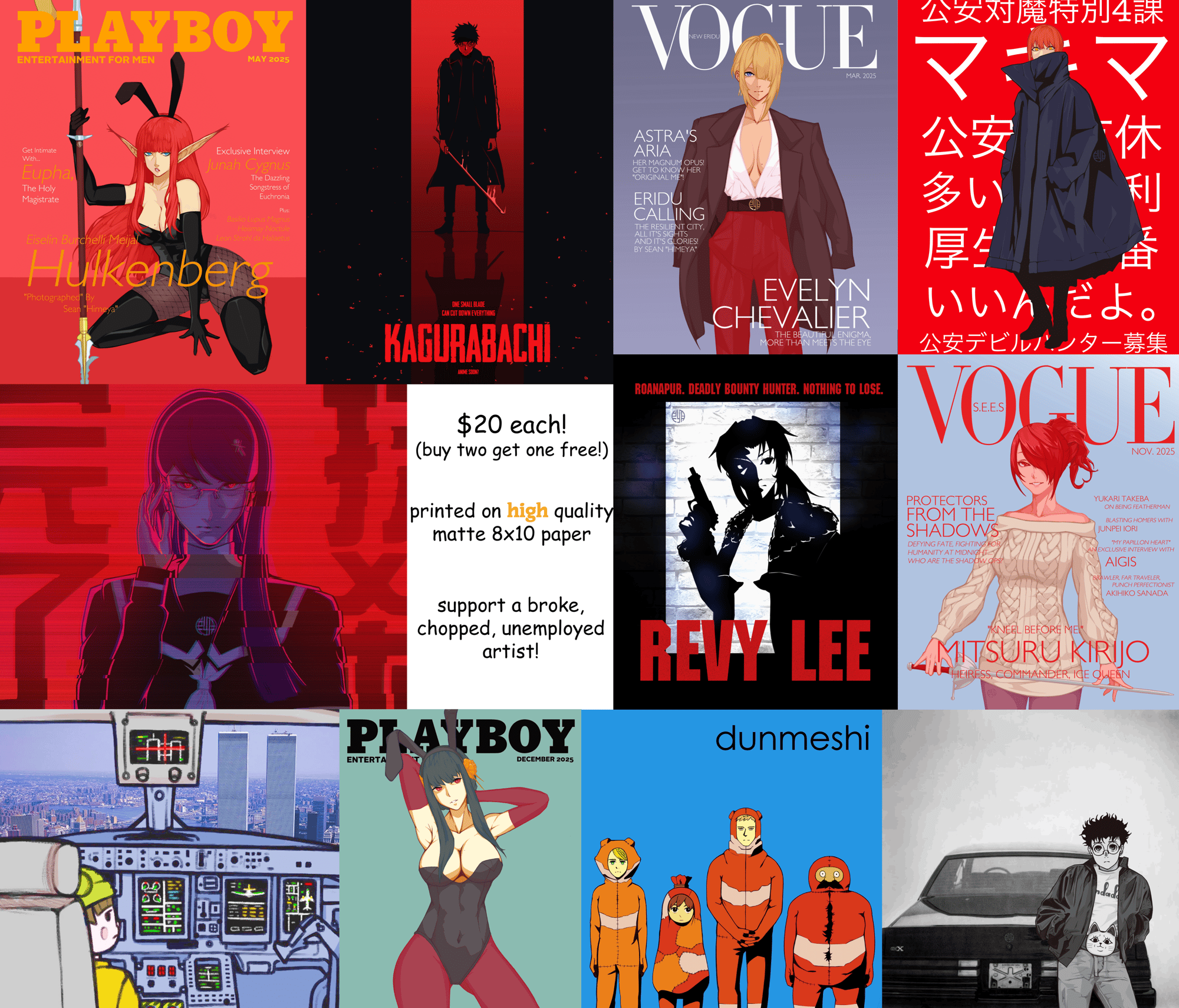 Please inform me which print you're interested in! Purchasing Two Prints will get one free for you! Additionally, purchasing a print will get you a sticker for free!